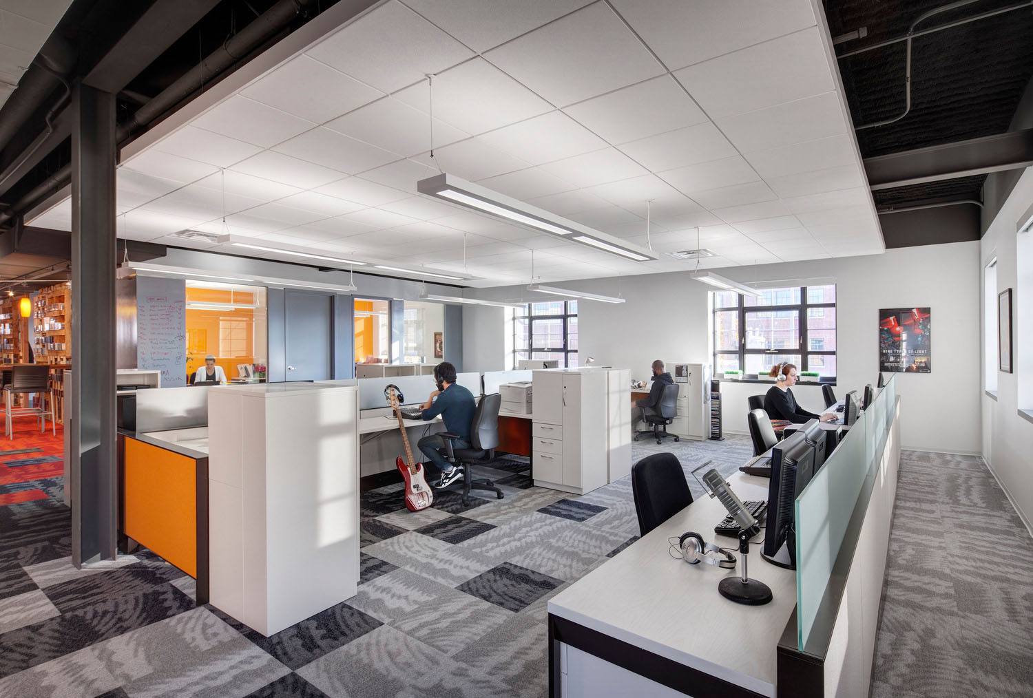 Catalyst converted ~14,000 SF over two stories into recording studios, performance spaces, offices, and a welcoming street presence; coordinated technical MEP/AV isolation with HGA and delivered a civic-minded, flexible layout that also enabled later café/outdoor activation.
