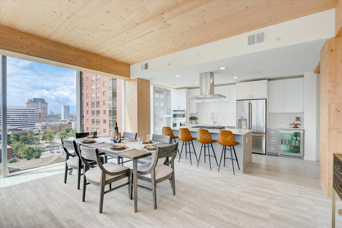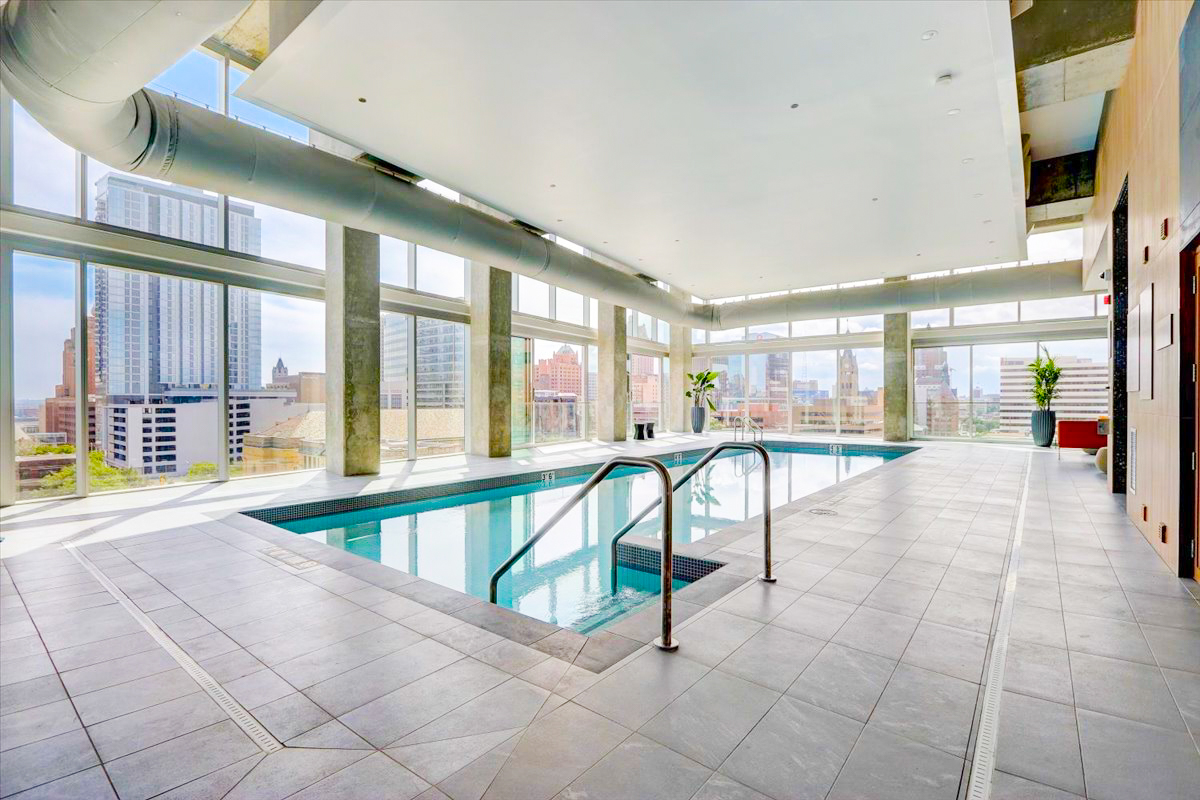 - Amenity-rich offering including: indoor pool, fitness center, sky decks, dog grooming suite, lounges, conference rooms, wine tasting room, and roof top amenities.