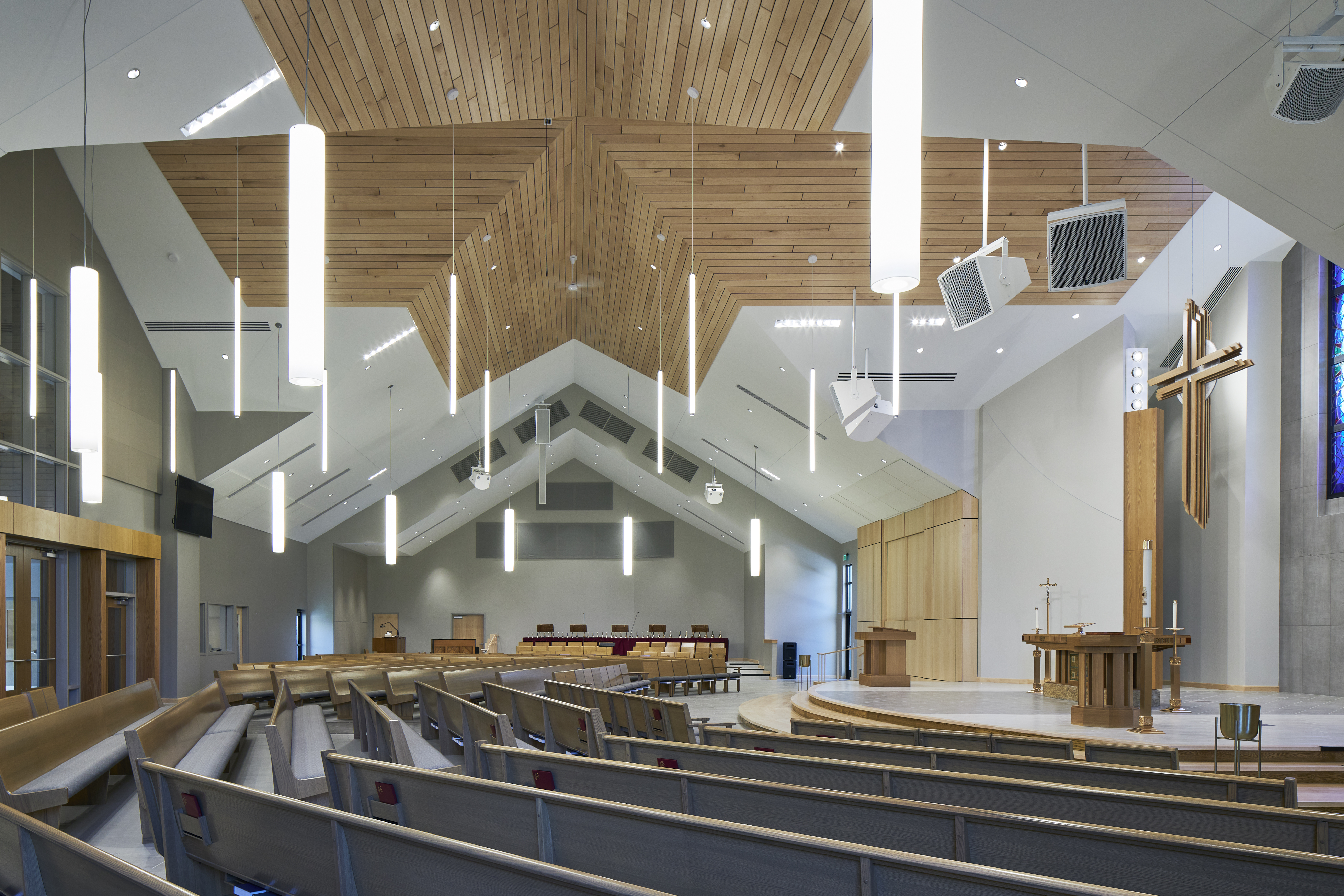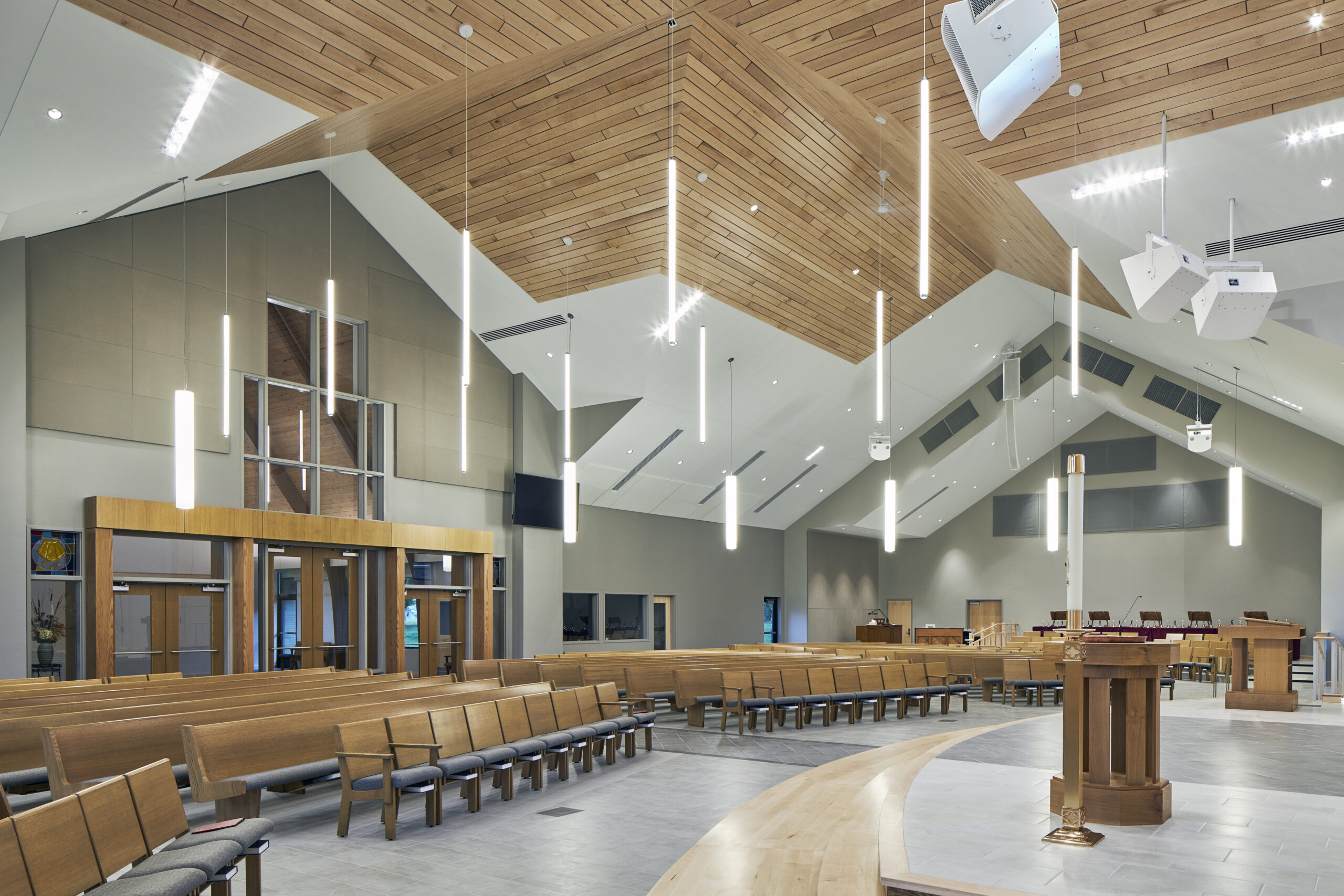 - Retained existing 1950’s sanctuary to serve as gathering space, creating both continuity and functional multi-venue capacity.