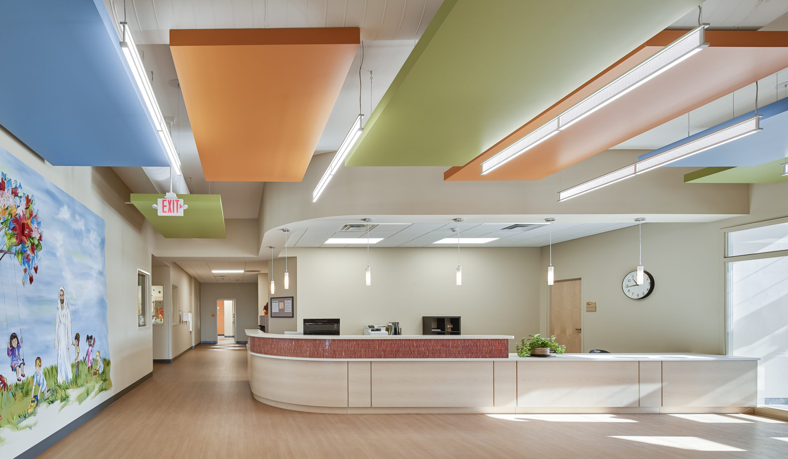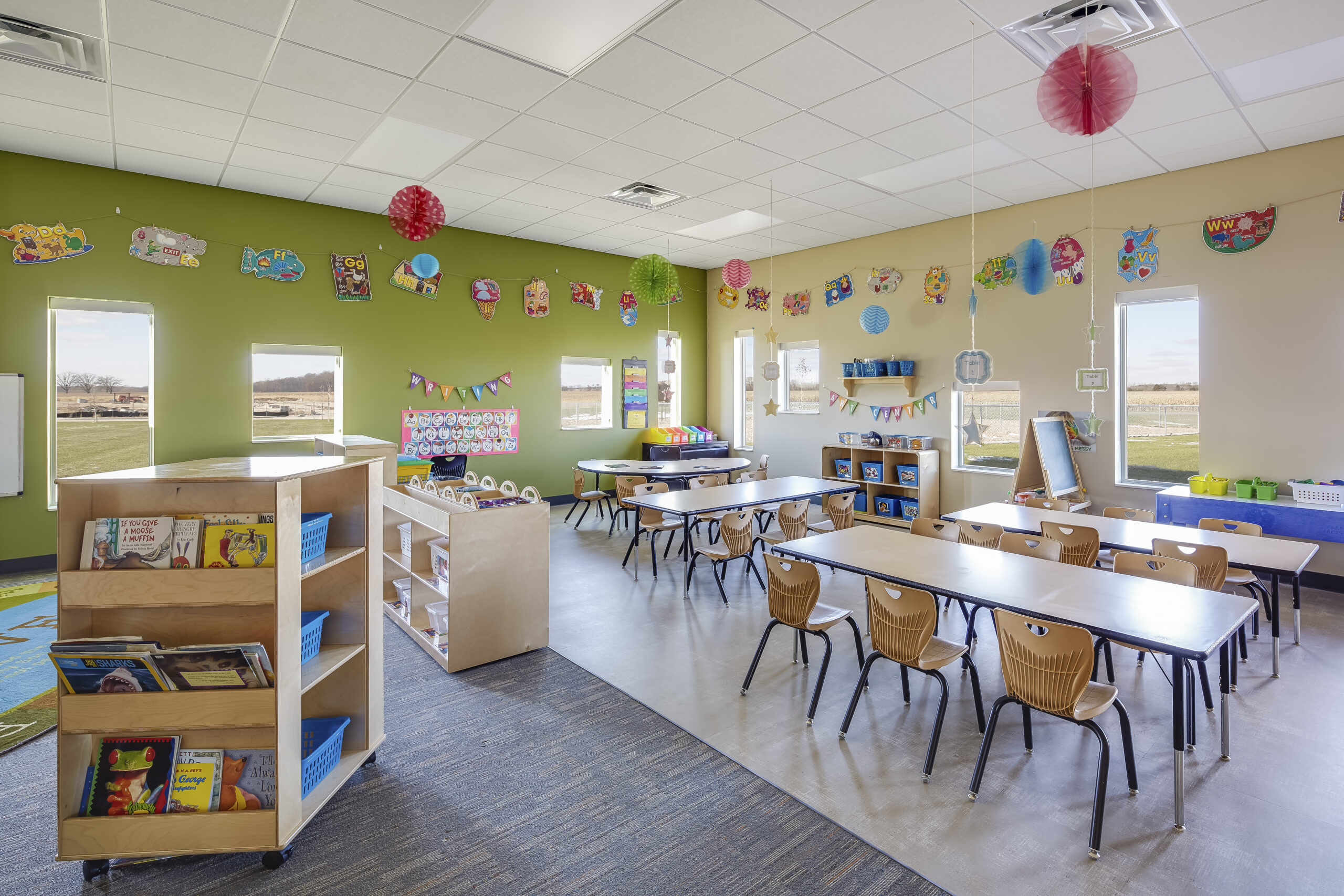 2. First Steps daycare and preschool wing with secure check-in, age-appropriate bathrooms, and indoor/outdoor play areas.