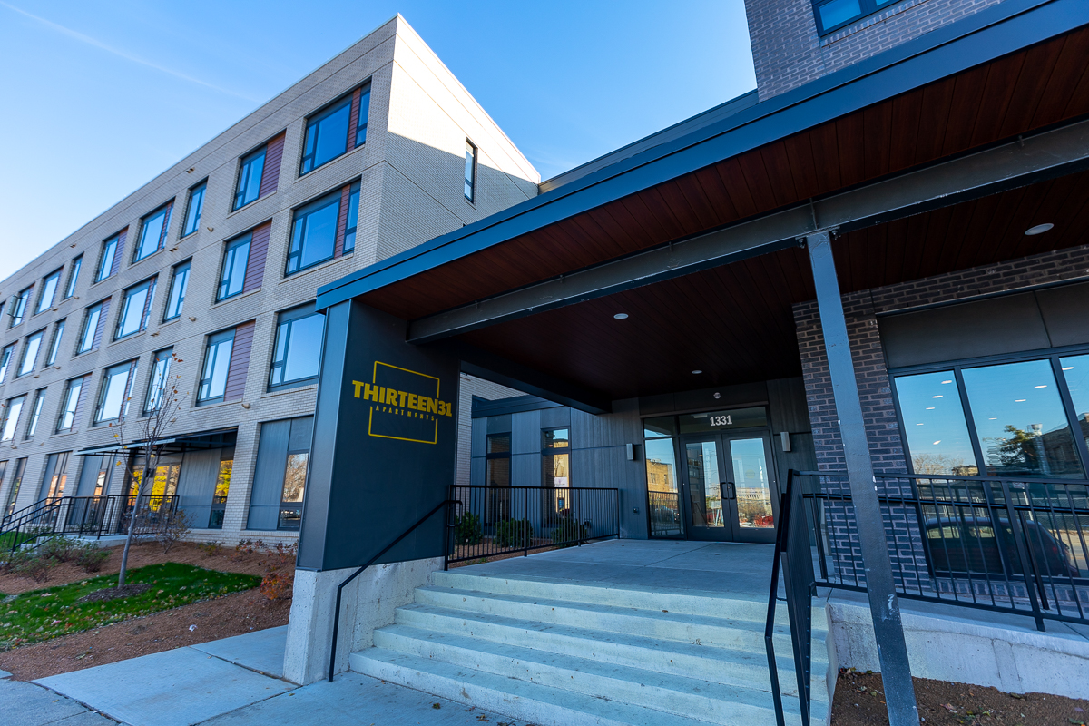 The site at 1331 W. National Avenue was a single-story structure in the heart of Walker’s Point, a neighborhood undergoing rapid transformation. The challenge was to deliver 89 residential units, nearly 82% of which needed to be affordable, on a tight infill site while balancing density, budget constraints, and neighborhood revitalization goals. Financing had to be assembled from layered sources, including 9% Low Income Housing Tax Credit (LIHTC) equity, Federal Home Loan Bank Affordable Housing Program (AHP) funds, City HOME funds, WEDC Brownfield Grant, and a traditional first mortgage. Ensuring that construction sequencing aligned with funding closings, while meeting design, zoning, and community expectation parameters, added complexity to the project execution.